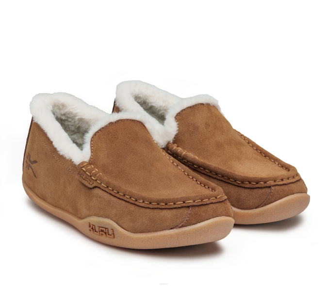 matériaux- daim, coutures mocassin cousues à la main, doublure en flanelle (hommes), doublure en faux mouton (femmes).